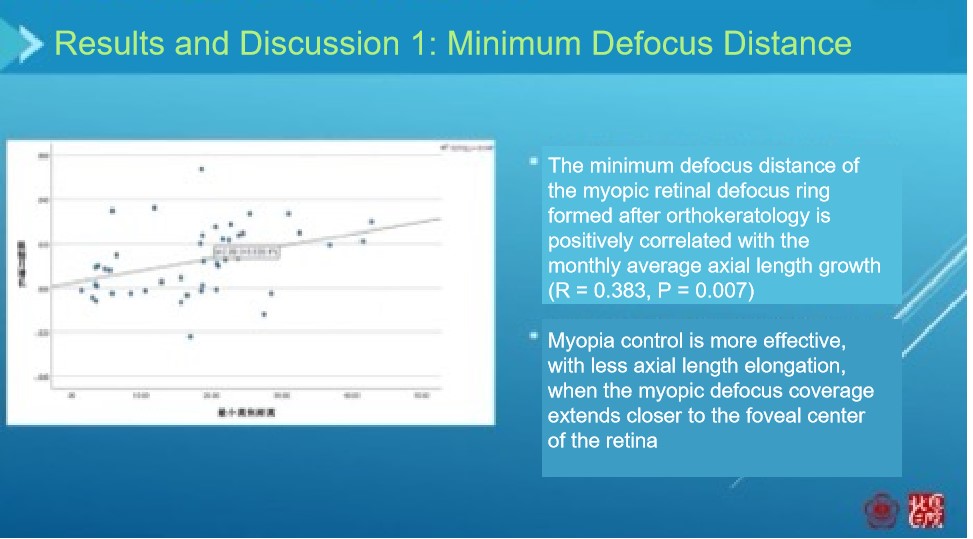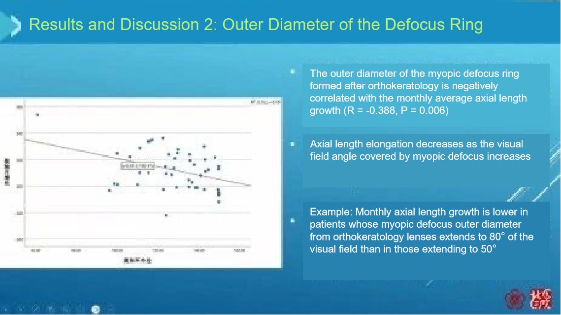 There is a negative correlation between the width and outer diameter of the defocus ring and axial elongation (the wider the width and the larger the outer diameter, the better the myopia control effect).